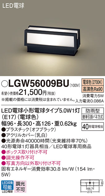 Panasonic ¥¨¥¯¥¹¥Æ¥ê¥¢¥é¥¤¥È LGW56009BU
