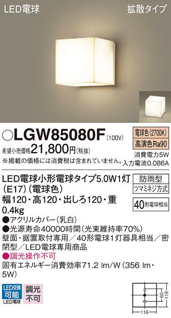 Panasonic ¥¨¥¯¥¹¥Æ¥ê¥¢¥é¥¤¥È LGW85080F