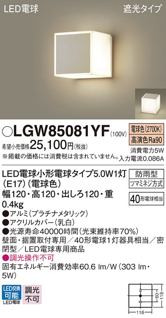 Panasonic ¥¨¥¯¥¹¥Æ¥ê¥¢¥é¥¤¥È LGW85081YF