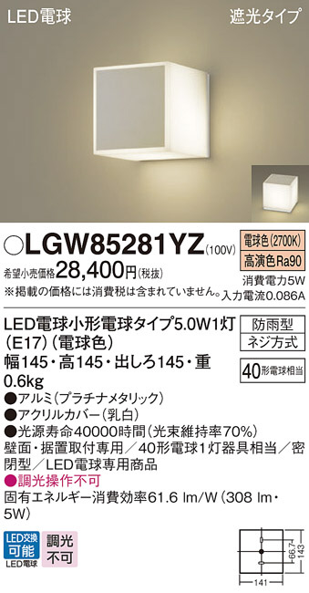 Panasonic ¥¨¥¯¥¹¥Æ¥ê¥¢¥é¥¤¥È LGW85281YZ