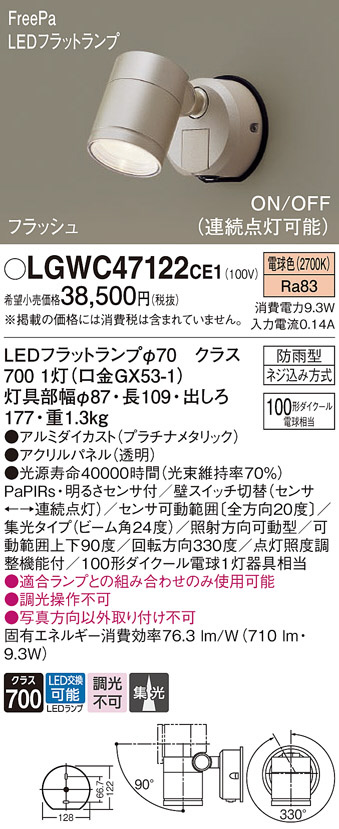 Panasonic ¥¨¥¯¥¹¥Æ¥ê¥¢¥¹¥Ý¥Ã¥È¥é¥¤¥È LGWC47122CE1