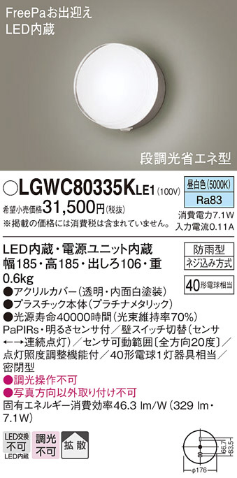 Panasonic ¥¨¥¯¥¹¥Æ¥ê¥¢¥é¥¤¥È LGWC80335KLE1