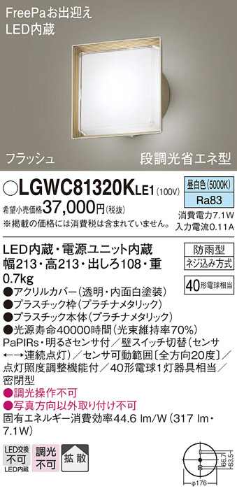 Panasonic ¥¨¥¯¥¹¥Æ¥ê¥¢¥é¥¤¥È LGWC81320KLE1