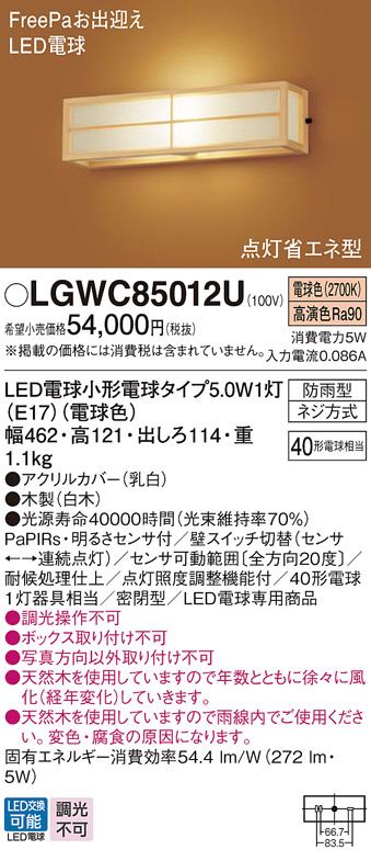 Panasonic ¥¨¥¯¥¹¥Æ¥ê¥¢¥é¥¤¥È LGWC85012U