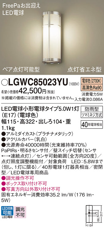 Panasonic ¥¨¥¯¥¹¥Æ¥ê¥¢¥é¥¤¥È LGWC85023YU
