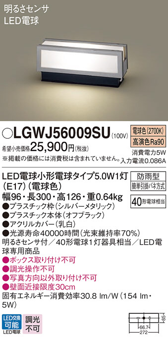 Panasonic ¥¨¥¯¥¹¥Æ¥ê¥¢¥é¥¤¥È LGWJ56009SU
