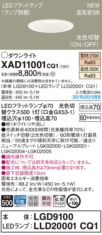 Panasonic ¥À¥¦¥ó¥é¥¤¥È XAD11001CQ1