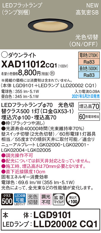 Panasonic ¥À¥¦¥ó¥é¥¤¥È XAD11012CQ1
