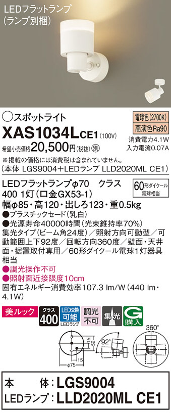 Panasonic ¥¹¥Ý¥Ã¥È¥é¥¤¥È XAS1034LCE1