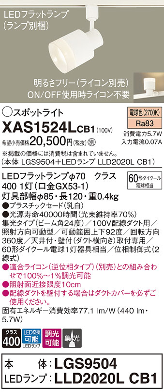 Panasonic ¥¹¥Ý¥Ã¥È¥é¥¤¥È XAS1524LCB1