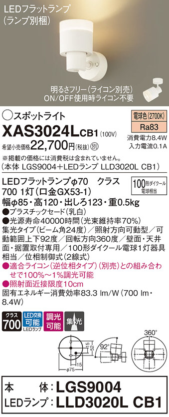 Panasonic ¥¹¥Ý¥Ã¥È¥é¥¤¥È XAS3024LCB1
