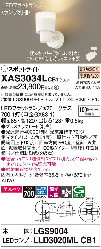 Panasonic ¥¹¥Ý¥Ã¥È¥é¥¤¥È XAS3034LCB1