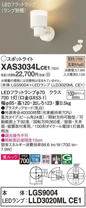Panasonic ¥¹¥Ý¥Ã¥È¥é¥¤¥È XAS3034LCE1