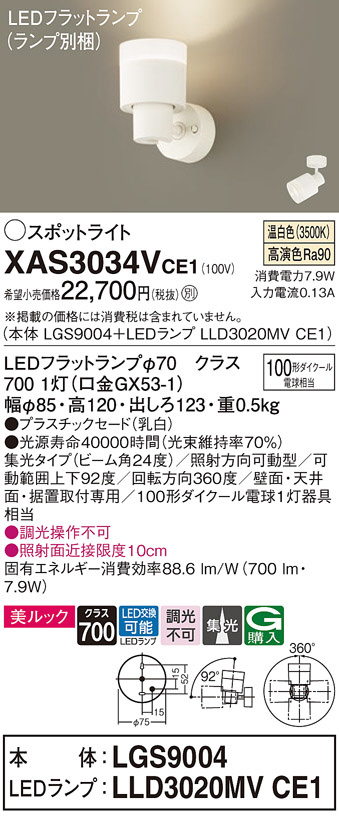 Panasonic ¥¹¥Ý¥Ã¥È¥é¥¤¥È XAS3034VCE1