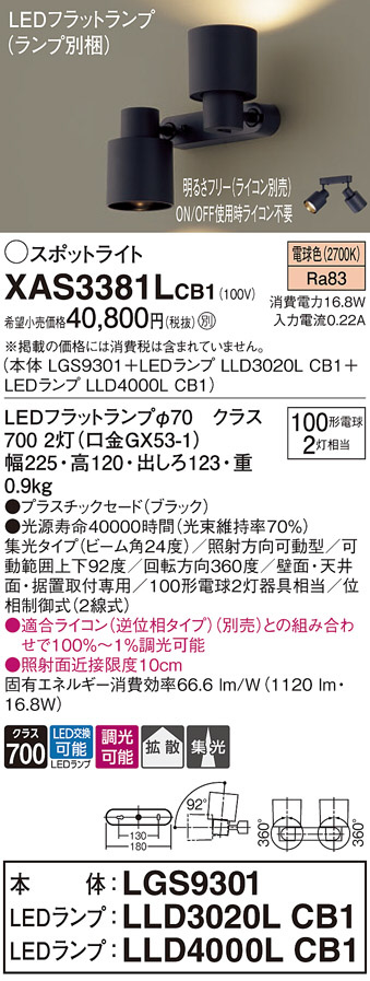 Panasonic ¥¹¥Ý¥Ã¥È¥é¥¤¥È XAS3381LCB1