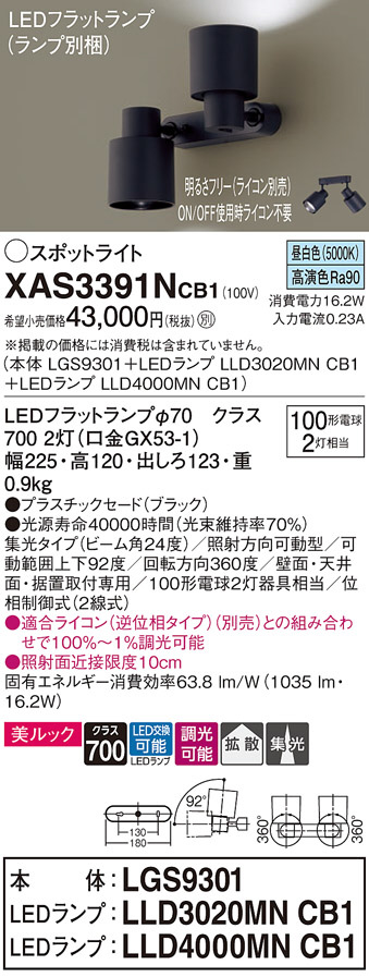 Panasonic ¥¹¥Ý¥Ã¥È¥é¥¤¥È XAS3391NCB1