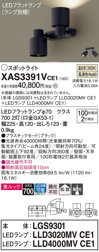 Panasonic ¥¹¥Ý¥Ã¥È¥é¥¤¥È XAS3391VCE1