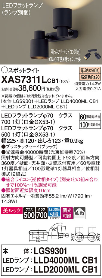 Panasonic ¥¹¥Ý¥Ã¥È¥é¥¤¥È XAS7311LCB1