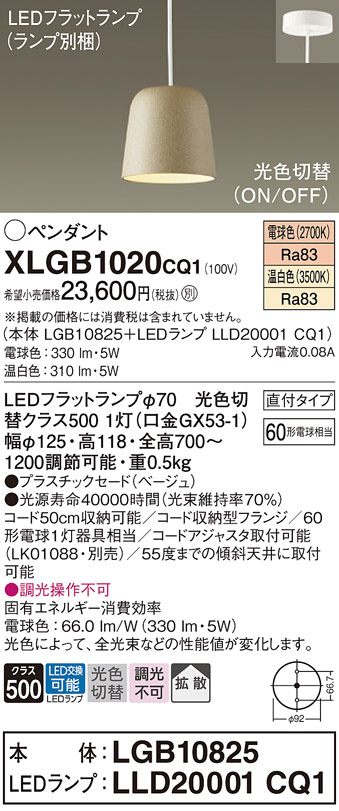 Panasonic ¥Ú¥ó¥À¥ó¥È XLGB1020CQ1