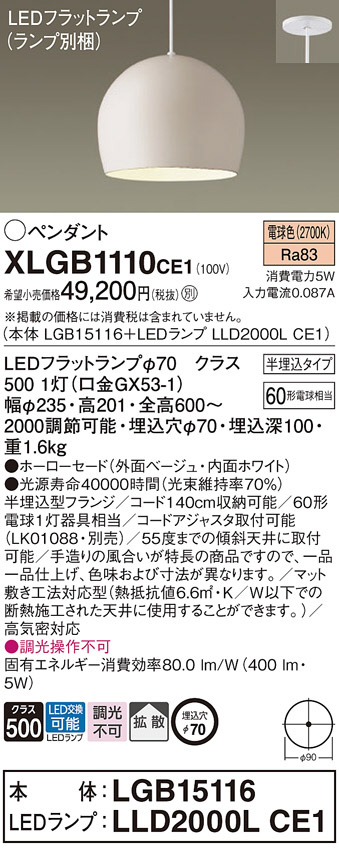 Panasonic ¥Ú¥ó¥À¥ó¥È XLGB1110CE1