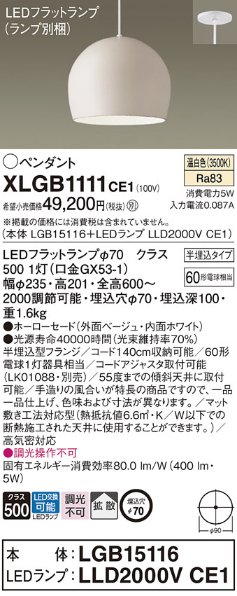 Panasonic ¥Ú¥ó¥À¥ó¥È XLGB1111CE1