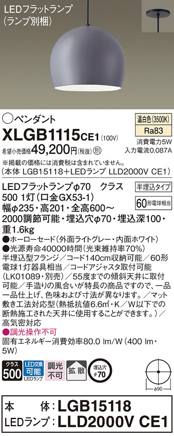 Panasonic ¥Ú¥ó¥À¥ó¥È XLGB1115CE1