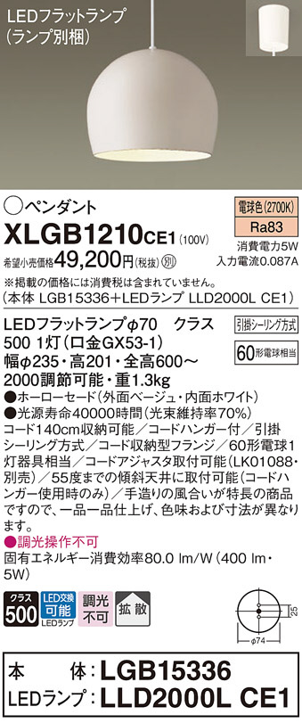 Panasonic ¥Ú¥ó¥À¥ó¥È XLGB1210CE1