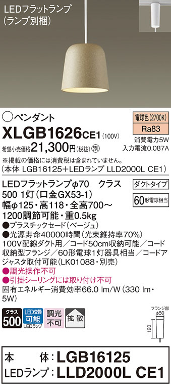 Panasonic ¥Ú¥ó¥À¥ó¥È XLGB1626CE1