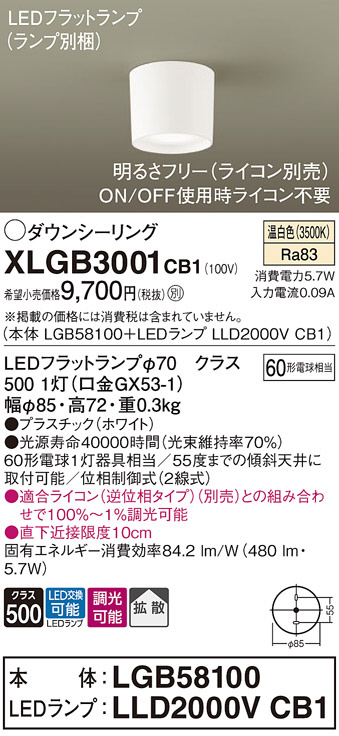 Panasonic ¥·¡¼¥ê¥ó¥°¥é¥¤¥È XLGB3001CB1