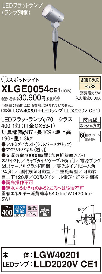 Panasonic ¥¨¥¯¥¹¥Æ¥ê¥¢¥¹¥Ý¥Ã¥È¥é¥¤¥È XLGE0054CE1