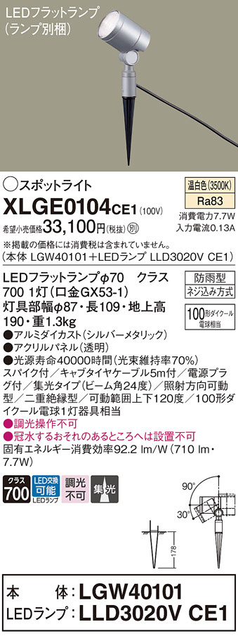 Panasonic ¥¨¥¯¥¹¥Æ¥ê¥¢¥¹¥Ý¥Ã¥È¥é¥¤¥È XLGE0104CE1