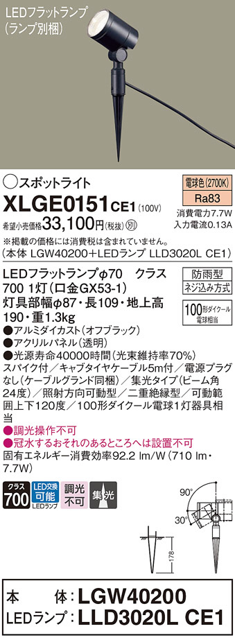 Panasonic ¥¨¥¯¥¹¥Æ¥ê¥¢¥¹¥Ý¥Ã¥È¥é¥¤¥È XLGE0151CE1