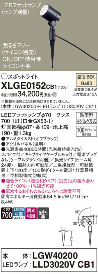 Panasonic ¥¨¥¯¥¹¥Æ¥ê¥¢¥¹¥Ý¥Ã¥È¥é¥¤¥È XLGE0152CB1