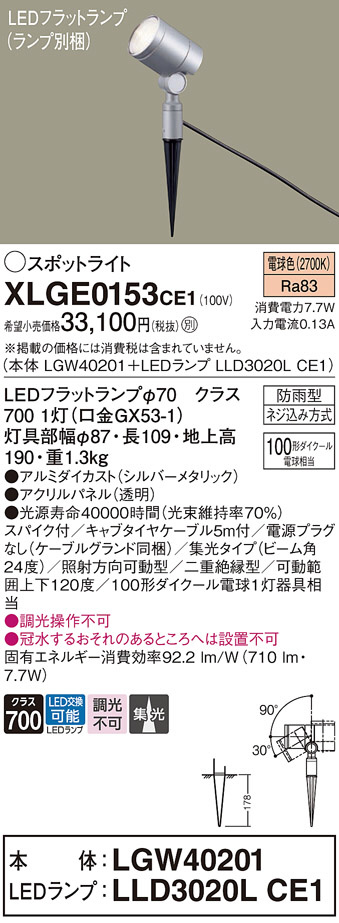 Panasonic ¥¨¥¯¥¹¥Æ¥ê¥¢¥¹¥Ý¥Ã¥È¥é¥¤¥È XLGE0153CE1