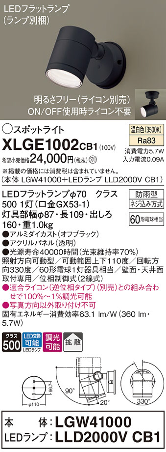 Panasonic ¥¨¥¯¥¹¥Æ¥ê¥¢¥¹¥Ý¥Ã¥È¥é¥¤¥È XLGE1002CB1