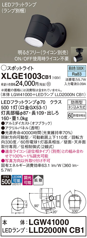 Panasonic ¥¨¥¯¥¹¥Æ¥ê¥¢¥¹¥Ý¥Ã¥È¥é¥¤¥È XLGE1003CB1