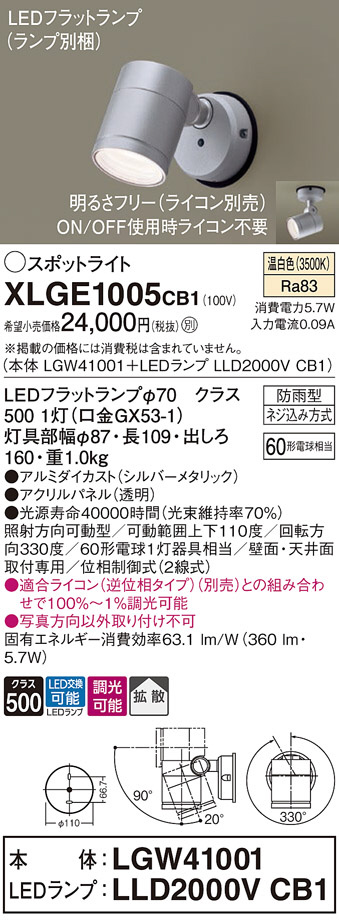 Panasonic ¥¨¥¯¥¹¥Æ¥ê¥¢¥¹¥Ý¥Ã¥È¥é¥¤¥È XLGE1005CB1