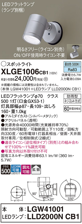 Panasonic ¥¨¥¯¥¹¥Æ¥ê¥¢¥¹¥Ý¥Ã¥È¥é¥¤¥È XLGE1006CB1