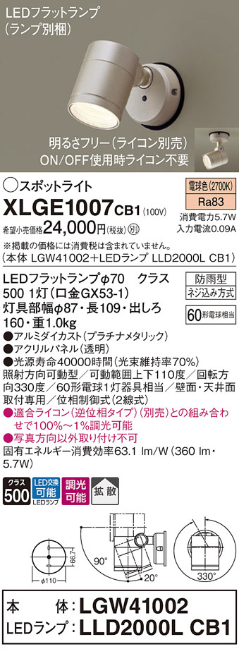 Panasonic ¥¨¥¯¥¹¥Æ¥ê¥¢¥¹¥Ý¥Ã¥È¥é¥¤¥È XLGE1007CB1