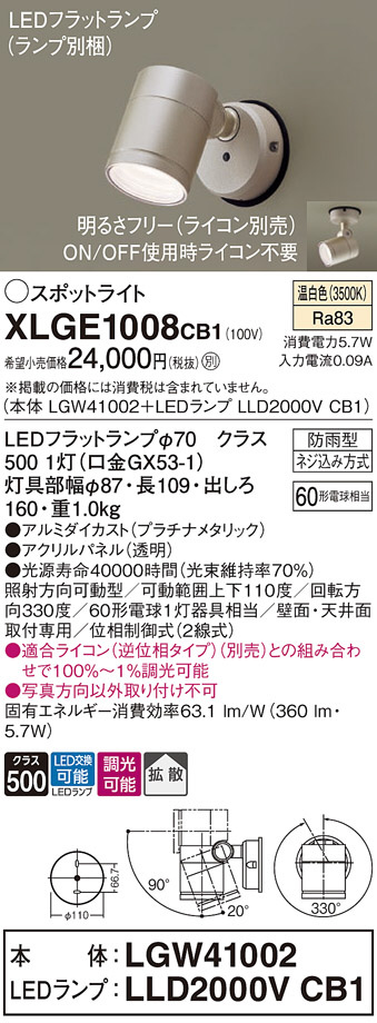 Panasonic ¥¨¥¯¥¹¥Æ¥ê¥¢¥¹¥Ý¥Ã¥È¥é¥¤¥È XLGE1008CB1