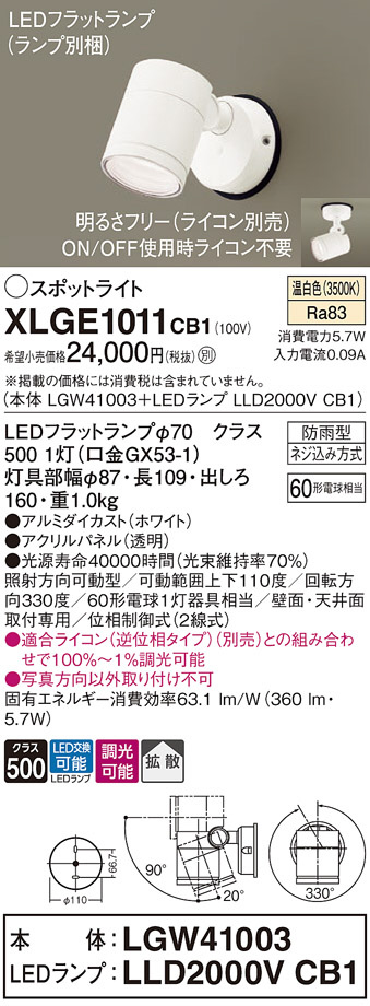 Panasonic ¥¨¥¯¥¹¥Æ¥ê¥¢¥¹¥Ý¥Ã¥È¥é¥¤¥È XLGE1011CB1