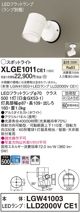 Panasonic ¥¨¥¯¥¹¥Æ¥ê¥¢¥¹¥Ý¥Ã¥È¥é¥¤¥È XLGE1011CE1