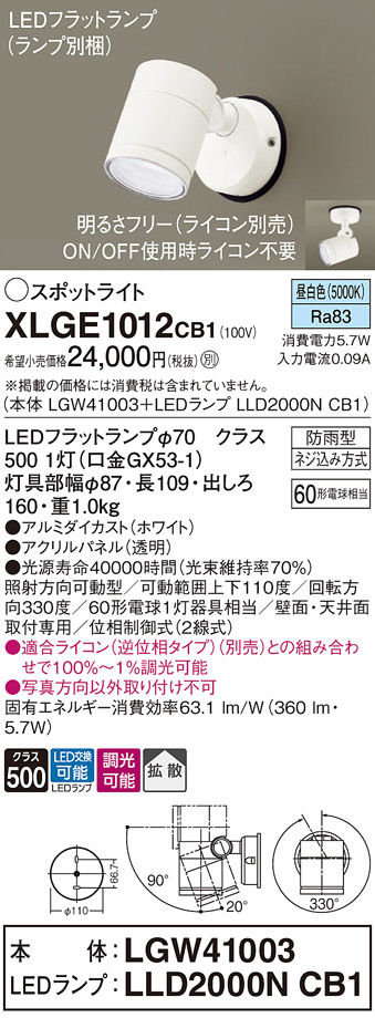 Panasonic ¥¨¥¯¥¹¥Æ¥ê¥¢¥¹¥Ý¥Ã¥È¥é¥¤¥È XLGE1012CB1