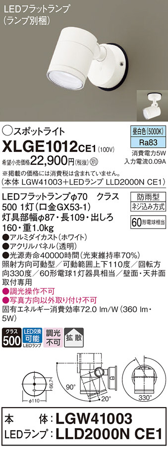 Panasonic ¥¨¥¯¥¹¥Æ¥ê¥¢¥¹¥Ý¥Ã¥È¥é¥¤¥È XLGE1012CE1