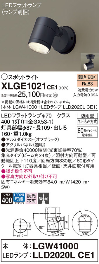 Panasonic ¥¨¥¯¥¹¥Æ¥ê¥¢¥¹¥Ý¥Ã¥È¥é¥¤¥È XLGE1021CE1