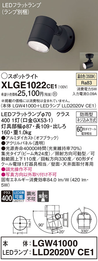 Panasonic ¥¨¥¯¥¹¥Æ¥ê¥¢¥¹¥Ý¥Ã¥È¥é¥¤¥È XLGE1022CE1