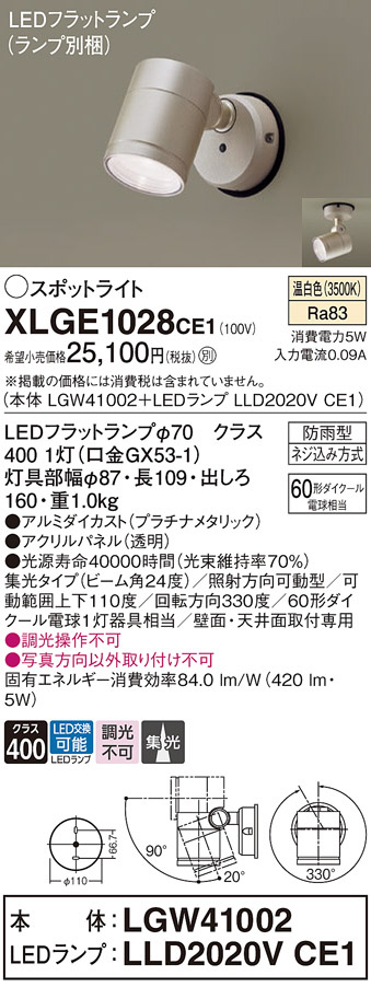 Panasonic ¥¨¥¯¥¹¥Æ¥ê¥¢¥¹¥Ý¥Ã¥È¥é¥¤¥È XLGE1028CE1