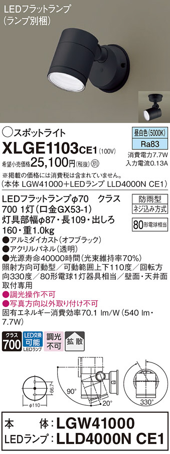 Panasonic ¥¨¥¯¥¹¥Æ¥ê¥¢¥¹¥Ý¥Ã¥È¥é¥¤¥È XLGE1103CE1