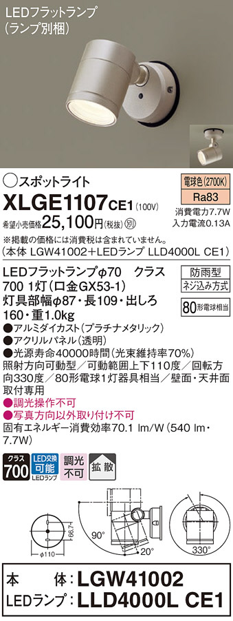 Panasonic ¥¨¥¯¥¹¥Æ¥ê¥¢¥¹¥Ý¥Ã¥È¥é¥¤¥È XLGE1107CE1