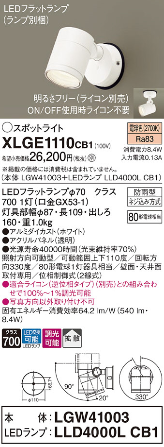 Panasonic ¥¨¥¯¥¹¥Æ¥ê¥¢¥¹¥Ý¥Ã¥È¥é¥¤¥È XLGE1110CB1